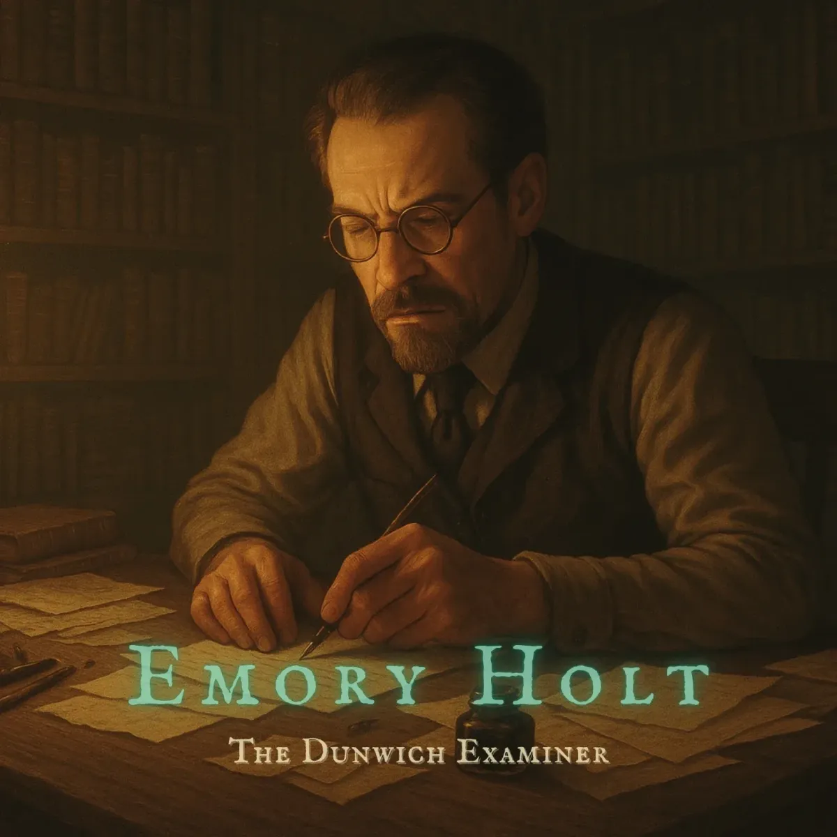 For over a decade, Emory Holt has curated The Dunwich Examiner’s forbidden archive, an underground collection of unpublished field reports, anonymous testimonies, recovered journal fragments, and photographic anomalies, many of which were dismissed as hoaxes or suppressed at the behest of unknown parties. It was Holt who reconstructed the Whitcroft Dossier, decrypted the Mallory Tapes, and identified the true cause of the Kingsport Lighthouse blackout in 1922. He is not a writer. He is not a journalist. He is a custodian of haunted things.